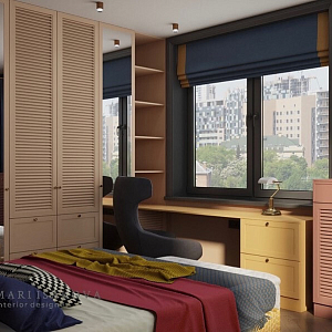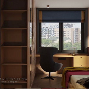 Интерьер спальни c рабочим местом в современном стиле, проект «Визуализация дизайн-проекта: квартира 62 квадратных метра. Спальня» №6