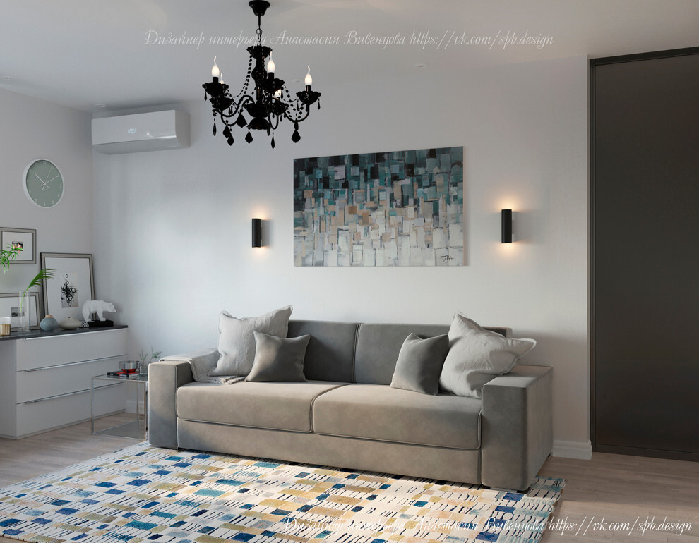 Интерьер гостиной в скандинавском стиле, проект «Северная весна» №26