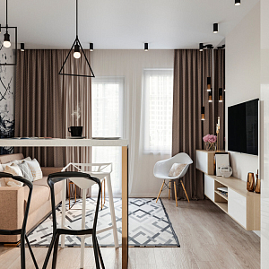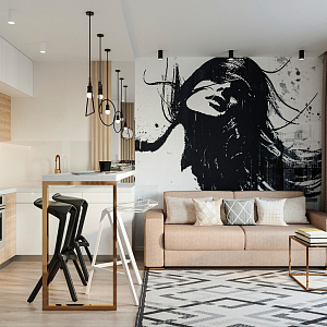 Интерьер кабинета cветовыми линиями в современном стиле и в стиле лофт, проект «24 элегантных метра для девушки» №4