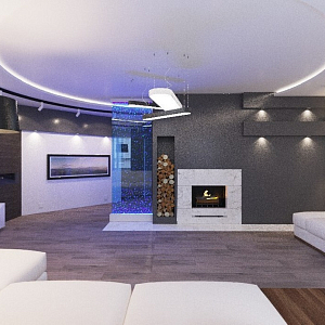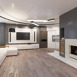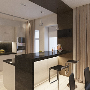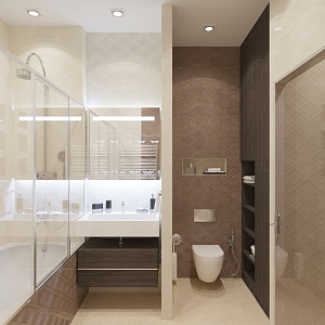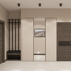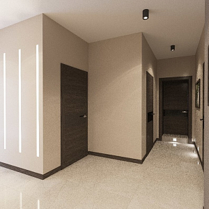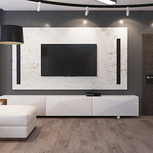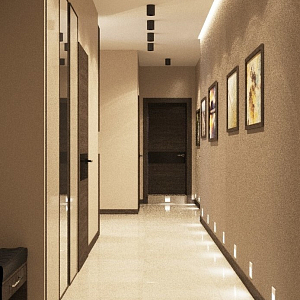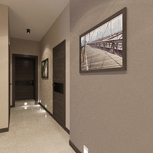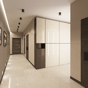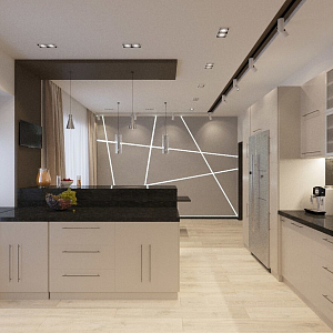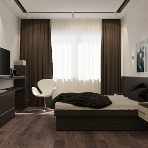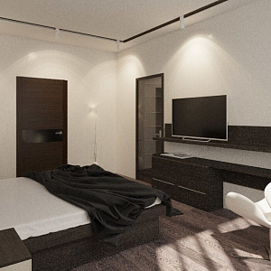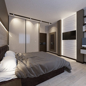 Интерьер спальни c рабочим местом, световыми линиями, подсветкой настенной, подсветкой светодиодной и светильниками над кроватью в современном стиле, проект «Большая квартира с мужским характером» №16
