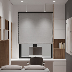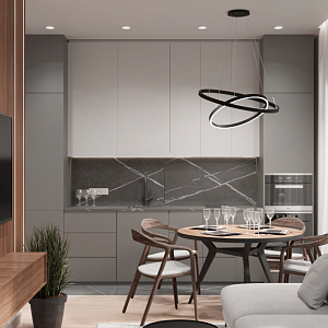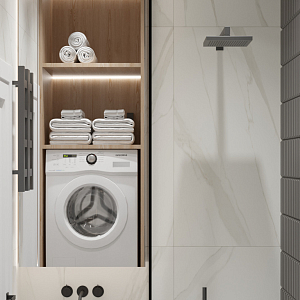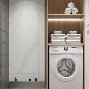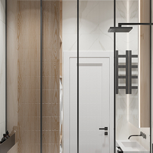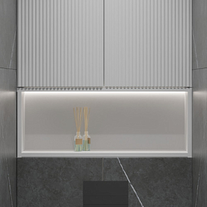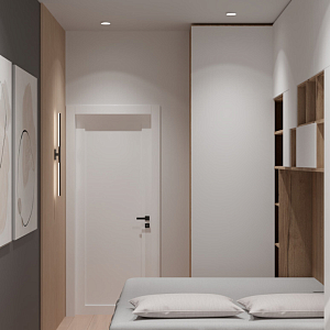 Интерьер спальни cветовыми линиями, рейками с подсветкой, бра над кроватью, подсветкой настенной, подсветкой светодиодной и светильниками над кроватью в современном стиле, проект «ЖК Баланс» №5