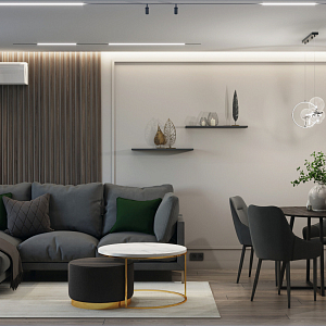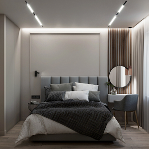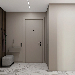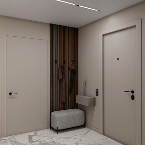 Интерьер коридора с нишей с подсветкой, световыми линиями, рейками с подсветкой, подсветкой настенной, подсветкой светодиодной и с подсветкой, проект «2-х комнатная квартира в Москве» №16