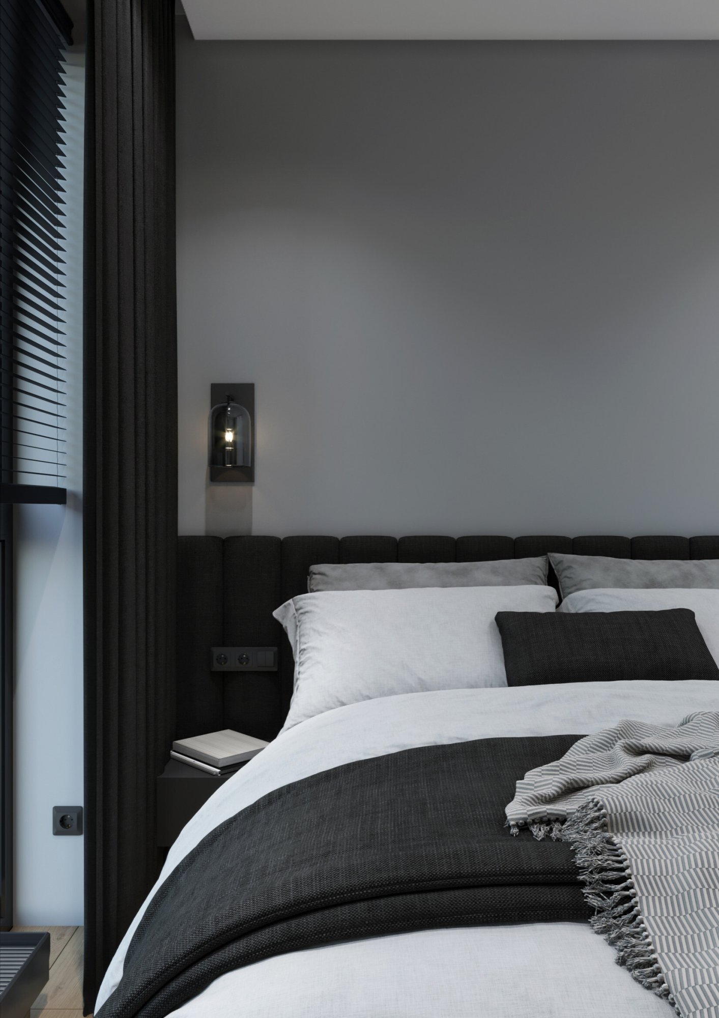 Интерьер спальни с подсветкой настенной, проект «Жк Селигер Сити» №8