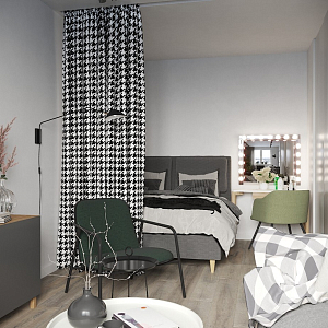 Интерьер спальни в стиле лофт и скандинавском стиле, проект «Жк кутузов град 1» №3