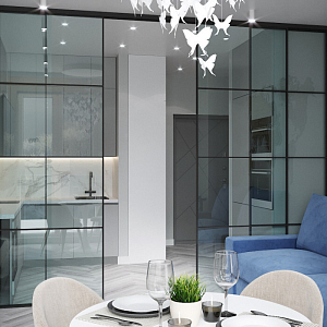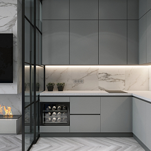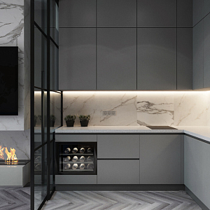 Интерьер кухни cветовыми линиями и подсветкой светодиодной, проект «КутузовГрад3» №13