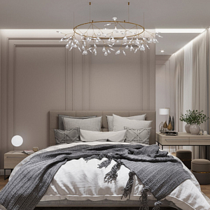 Интерьер спальни cветильниками над кроватью и световыми линиями в современном стиле, проект «Спальная комната в современном стиле» №2