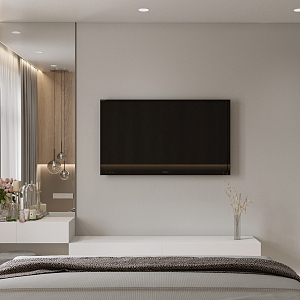 Интерьер с нишей с подсветкой, подсветкой настенной, подсветкой светодиодной, порогом, рейками с подсветкой, с подсветкой и световыми линиями в современном стиле, проект «ЖК Лайф» №31