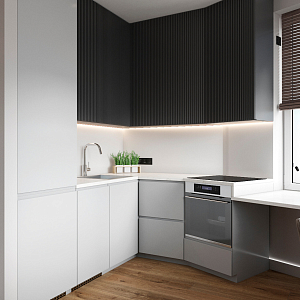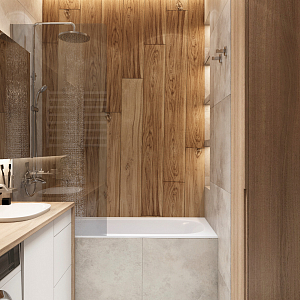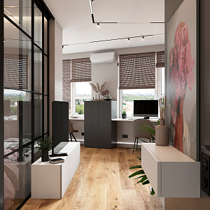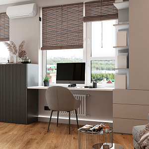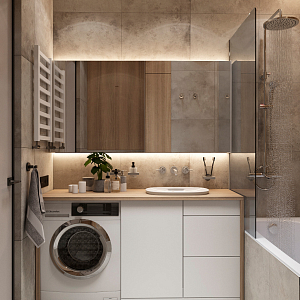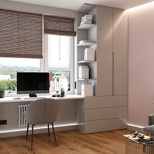 Интерьер спальни с бра над кроватью, нишей с подсветкой, подсветкой настенной, подсветкой светодиодной, рейками с подсветкой, с подсветкой, светильниками над кроватью и световыми линиями, проект «ЖК Новая Звезда» №13
