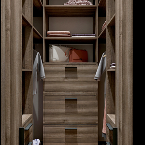 Интерьер спальни cветовыми линиями, рейками с подсветкой, подсветкой настенной, подсветкой светодиодной и светильниками над кроватью в современном стиле, проект «ЖК Алые Паруса» №3