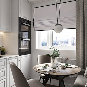 Интерьер кухни cветильниками над столом в скандинавском стиле, проект «Г. Электроугли» №6