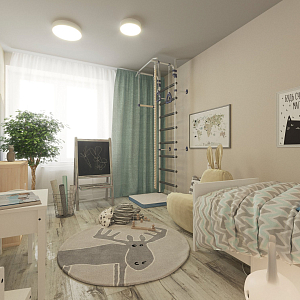 Интерьер c рабочим местом, жалюзи и дверными жалюзи, проект «Стильная квартира в Москве» №4