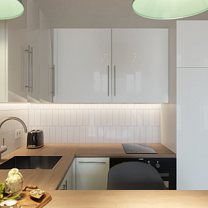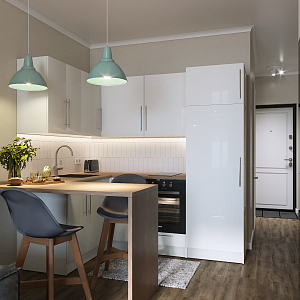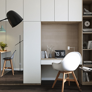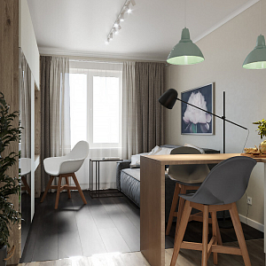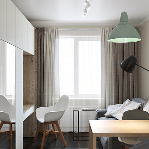 Интерьер спальни с картинами над камином в современном стиле, проект «Студия 24 м2» №9