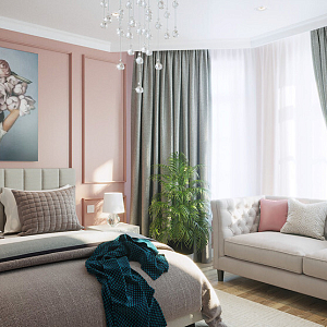 Интерьер спальни с картинами над камином, проект «Проект в МО» №2