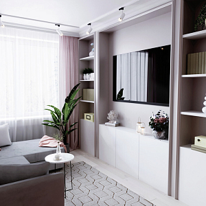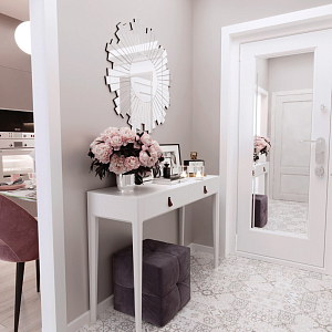 Интерьер коридора с зеркалом на двери, проект «Жк Хорошевский» №4