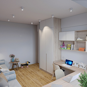 Интерьер с подсветкой настенной, подсветкой светодиодной, рейками с подсветкой, с подсветкой, с рабочим местом и световыми линиями в современном стиле, проект «Проект 3-х комнатной квартиры в Москве.» №12