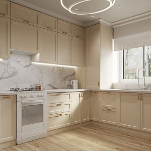 Интерьер кухни cветовыми линиями и подсветкой светодиодной, проект «Натур» №18