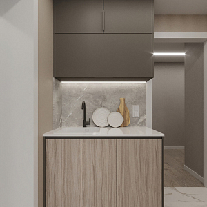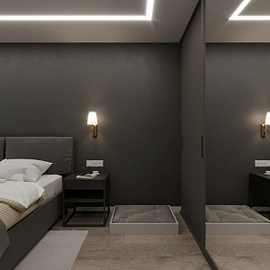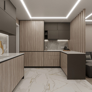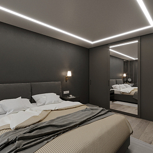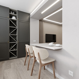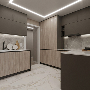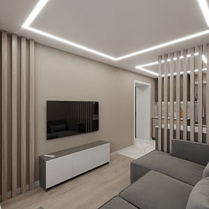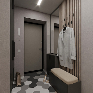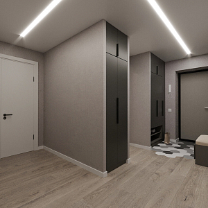 Интерьер прихожей cветовыми линиями, рейками с подсветкой, порогом, подсветкой настенной, подсветкой светодиодной и с подсветкой в современном стиле, проект «Магницкий» №4