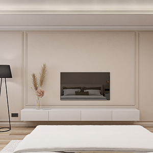 Интерьер c рабочим местом, нишей с подсветкой, световыми линиями, рейками с подсветкой, подсветкой настенной, подсветкой светодиодной и с подсветкой в современном стиле, проект «Неомин» №21