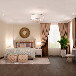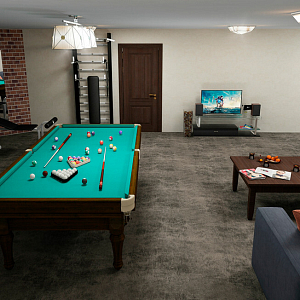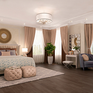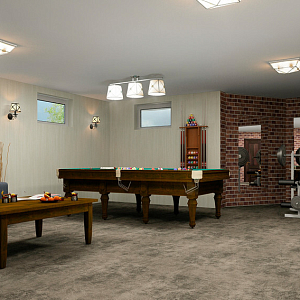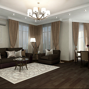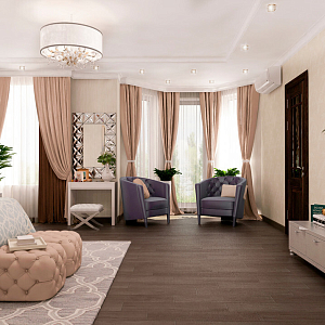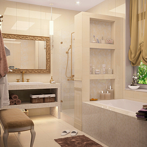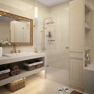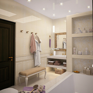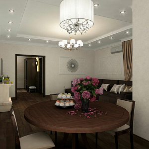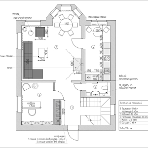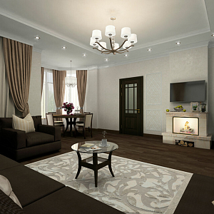Интерьер с перегородкой, нишей, зонированием, сауной, без дверей, проходной, зонированием шторами, гостиной-прихожей, гостиной-столовой, проемом, open space и переговорной в неоклассике, проект «Частный дом в Энгельсе. 1,2 этаж, цоколь» №20