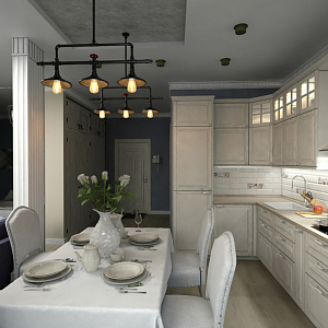 Интерьер кухни cветильниками над столом в неоклассике, проект «Конкурсная работа для Переделка ТВ» №2