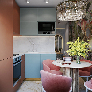 Интерьер кафе и ресторана в современном стиле, проект «Яркая кухня с фреской» №2