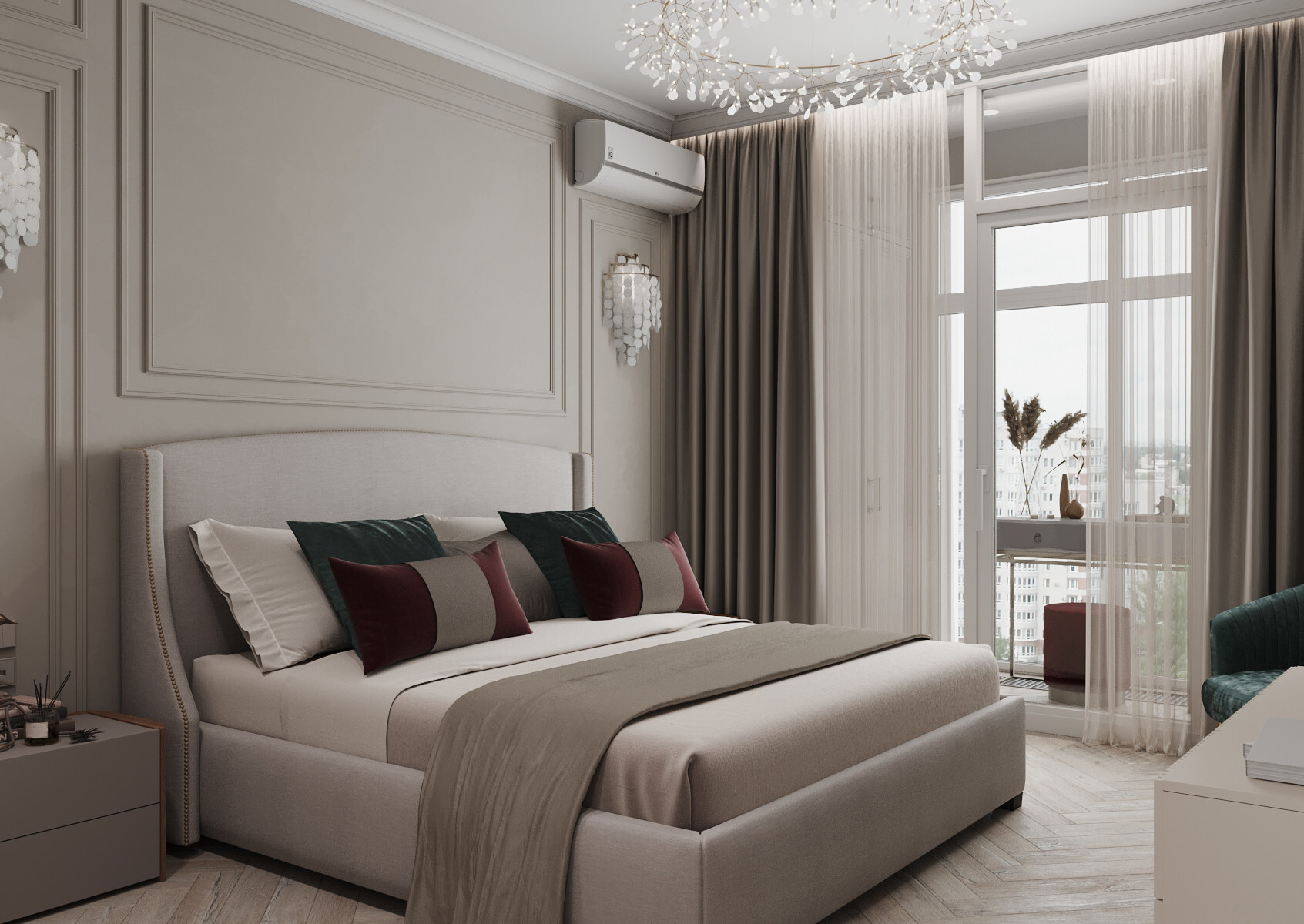 Интерьер спальни в неоклассике, проект «ЖК Life Кутузовский» №10