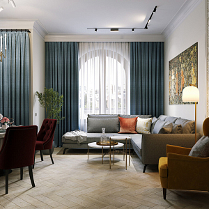 Интерьер гостиной, проект «ЖК Серебряный Фонтан» №4