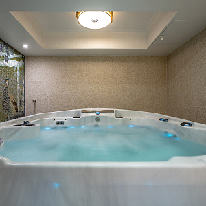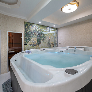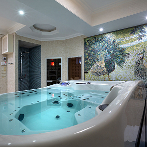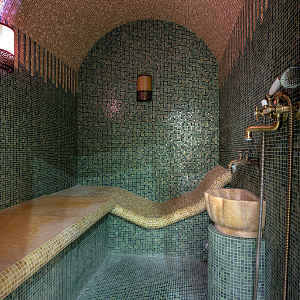 Интерьер c рабочим местом, нишей с подсветкой, световыми линиями, подсветкой настенной, подсветкой светодиодной и с подсветкой в восточном стиле, проект «Спа-зона в частном доме» №6