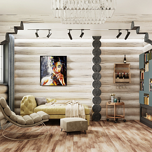 Интерьер гостиной в современном стиле, проект «Бревенчатый дом в Подмосковье» №3