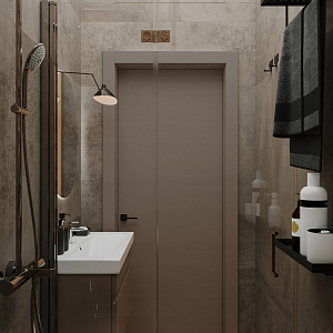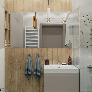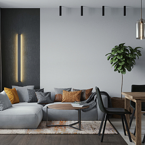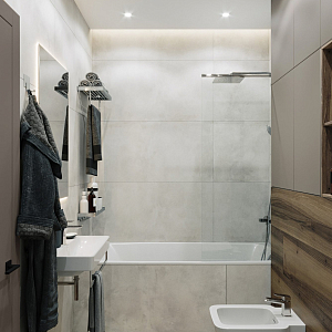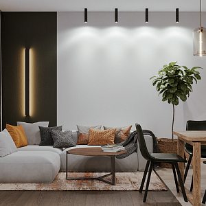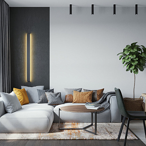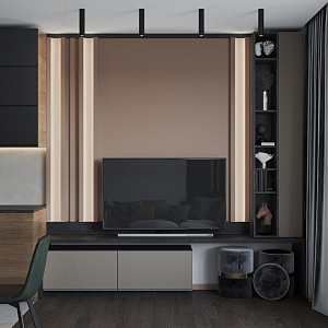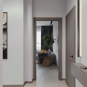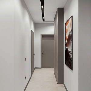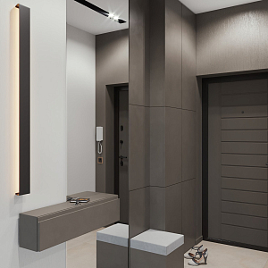 Интерьер с нишей с подсветкой, проходной, световыми линиями, рейками с подсветкой, порогом, подсветкой настенной, подсветкой светодиодной и с подсветкой в современном стиле, проект «Квартира в современном стиле в ЖК "Московский квартал", г. Екатеринбург» №10