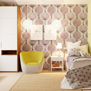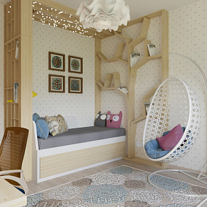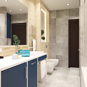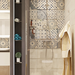 Интерьер ванной с душевой из плитки в современном стиле, проект «Детские для девочек КП "Мед"» №5
