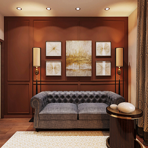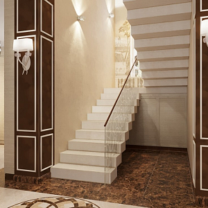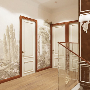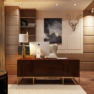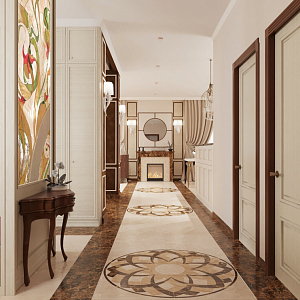 Интерьер с нишей с подсветкой, переговорной, подсветкой настенной, подсветкой рабочей зоны, подсветкой светодиодной, проходной, рейками с подсветкой, с подсветкой, с рабочим местом и световыми линиями в классическом стиле, проект «Загородный дом в совреме №4