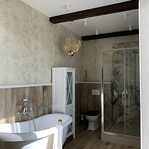 Интерьер ванной в неоклассике и в стиле кантри, проект «Ванная в загородном доме М. Седельниково» №2
