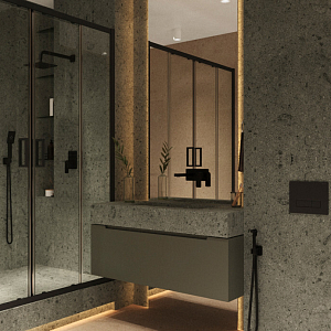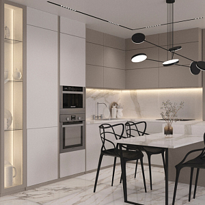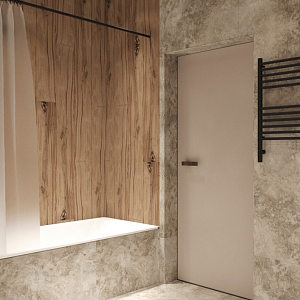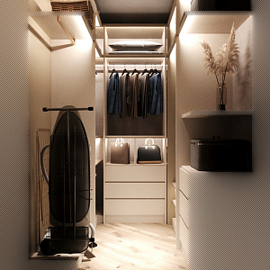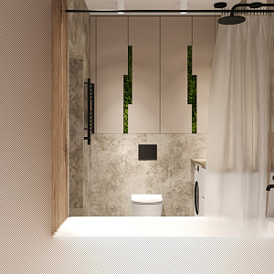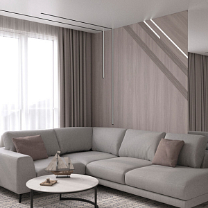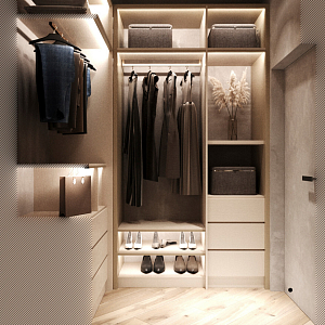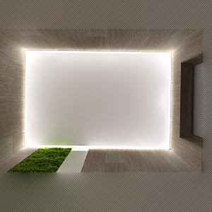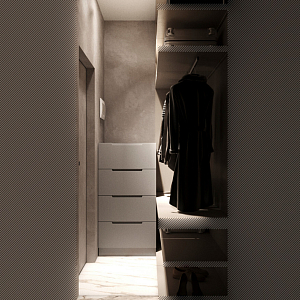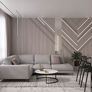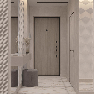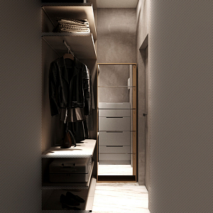 Интерьер коридора cветовыми линиями, рейками с подсветкой, подсветкой настенной и подсветкой светодиодной в современном стиле, проект «ЖК Московский квартал с сауной-бочкой в квартире» №21