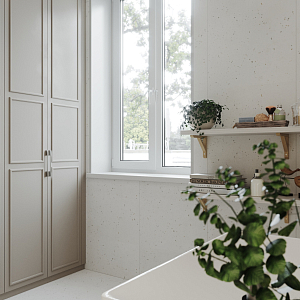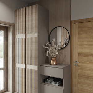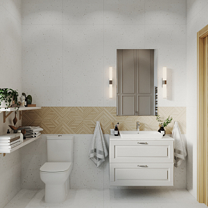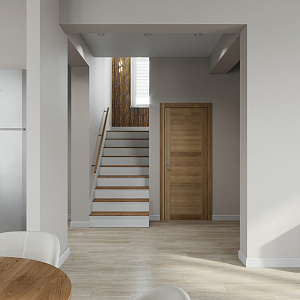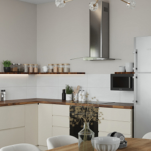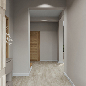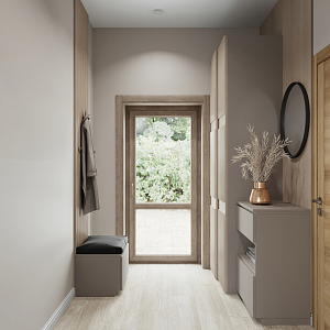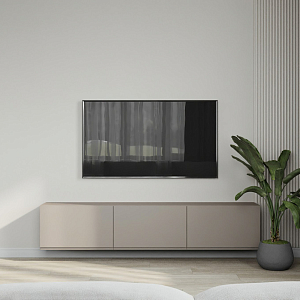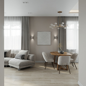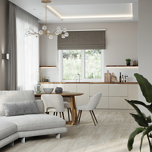 Интерьер гостиной с панно за телевизором, стеной с телевизором, телевизором на стене, керамогранитом на стену с телевизором и подсветкой настенной в современном стиле, проект «Загородный дом 160кв.м.» №8