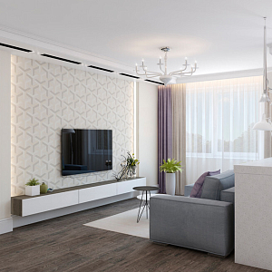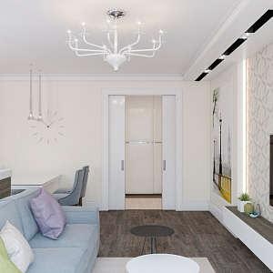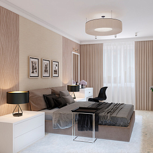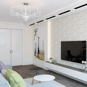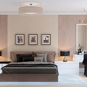 Интерьер с подсветкой настенной, подсветкой светодиодной, с подсветкой, светильниками над кроватью и световыми линиями в современном стиле, проект «Новая квартира на ул. Батурина» №14