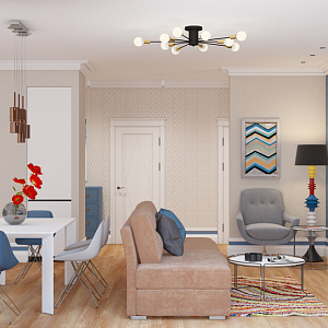 Интерьер кухни в неоклассике и в стиле лофт, проект «Гостиная с яркими акцентами» №3