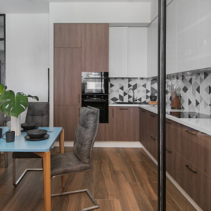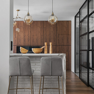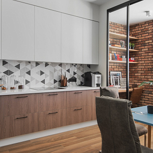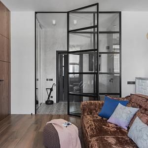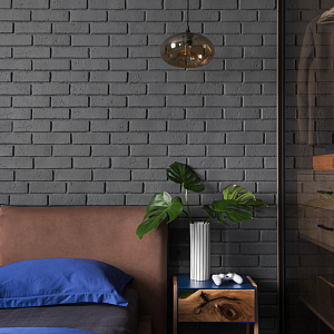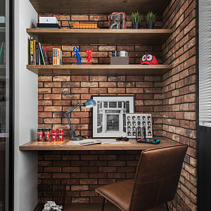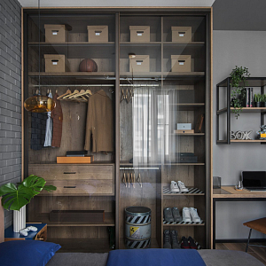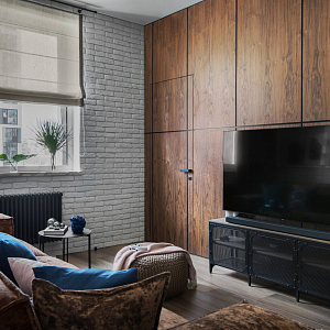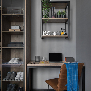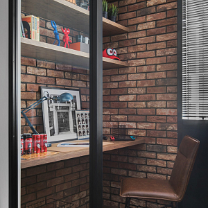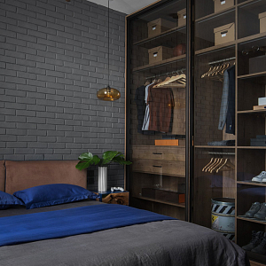 Интерьер спальни c рабочим местом и шкафом у кровати в стиле лофт, проект «Квартира с характером в ЖК Тушино 2018» №4