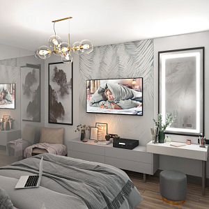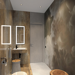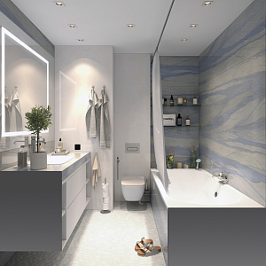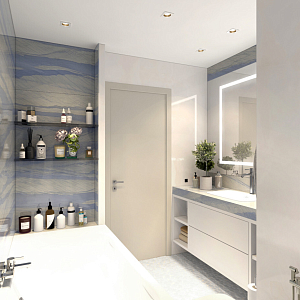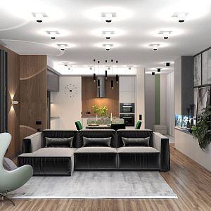 Интерьер cветовыми линиями, рейками с подсветкой, подсветкой настенной, подсветкой светодиодной и с подсветкой в современном стиле, проект «ЖК Резиденция Композиторов» №39
