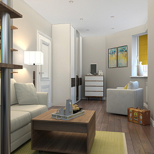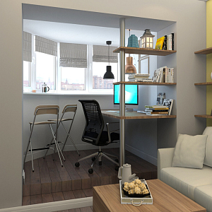 Интерьер гостиной с балконом, подсветкой светодиодной и с рабочим местом в современном стиле, проект «Квартира с яркими акцентами в современном стиле» №4