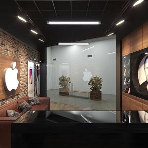 Интерьер гостиной с нишей с подсветкой, подсветкой настенной, подсветкой рабочей зоны, подсветкой светодиодной, рейками с подсветкой, с подсветкой и световыми линиями в стиле лофт, проект «Дизайн-проект для ремонта смартфонов "Irazbil"» №1
