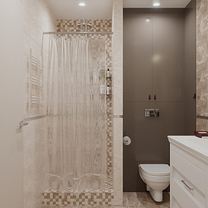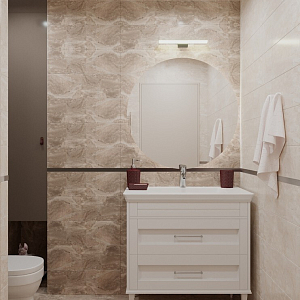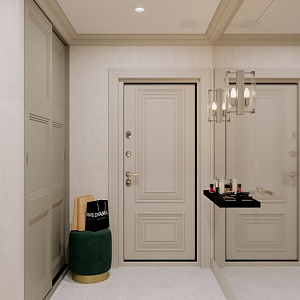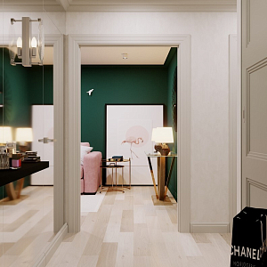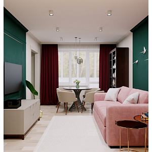 Интерьер столовой cветовыми линиями, подсветкой настенной и подсветкой светодиодной в модернизме, проект «Новая жизнь в хрущевке» №6