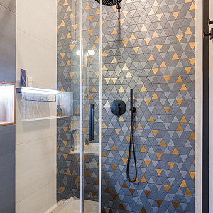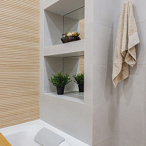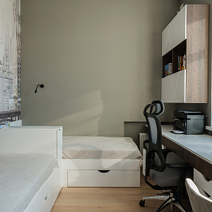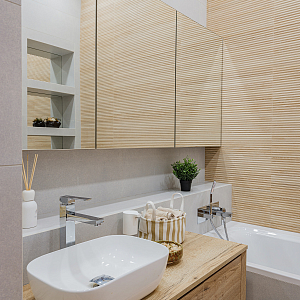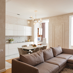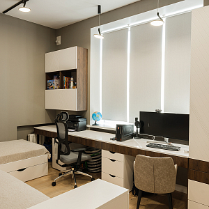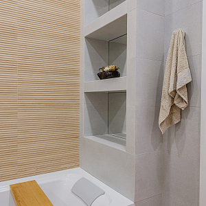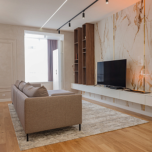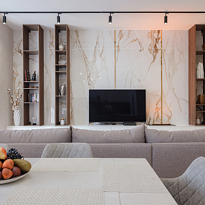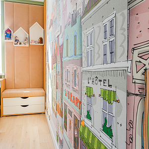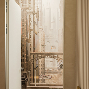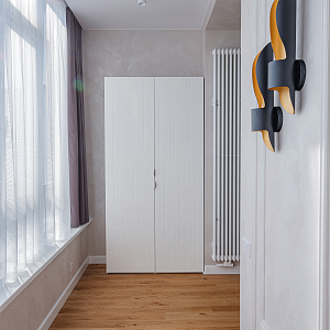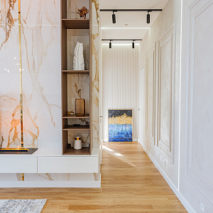 Интерьер коридора с проходной, световыми линиями, порогом, подсветкой настенной и подсветкой светодиодной в современном стиле, проект «Реализация квартиры ЖК Центральный» №5