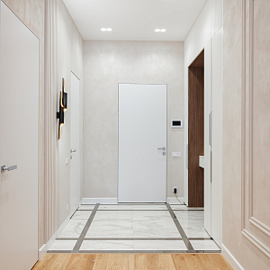 Интерьер c рабочим местом, кроватью у двери, кроватью между шкафами и шкафом у кровати в современном стиле, в стиле лофт и эко, проект «Реализация квартиры ЖК Центральный» №54