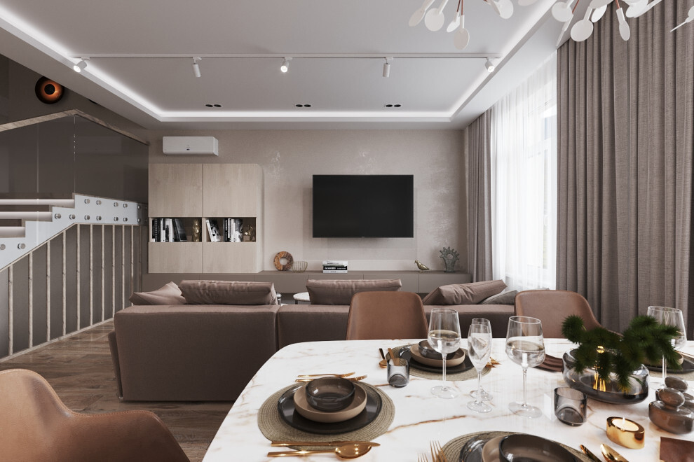 Интерьер гостиной с переговорной, проект «Таунхаус в лесу» №23