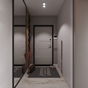Интерьер гостиной cветовыми линиями, рейками с подсветкой, подсветкой настенной и подсветкой светодиодной в современном стиле, проект «Нескучная геометрия в ЖК Марс» №25