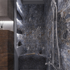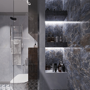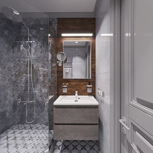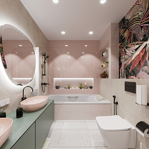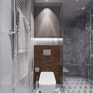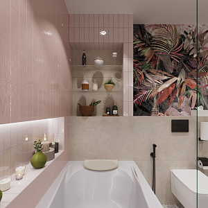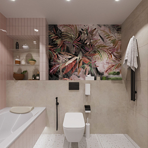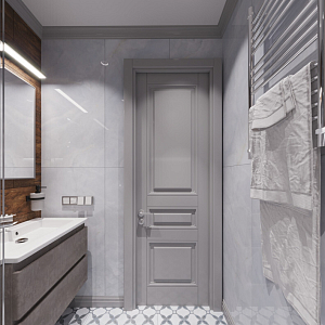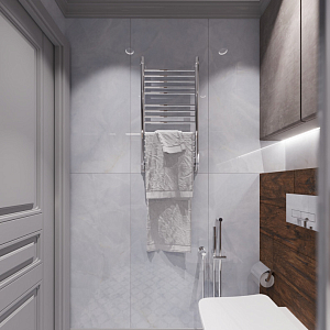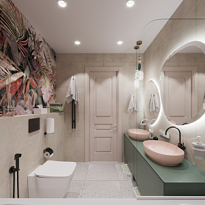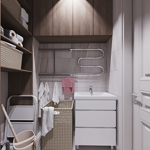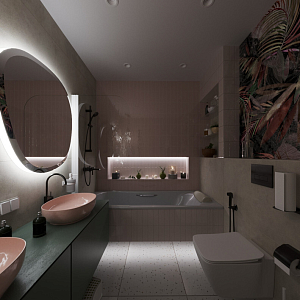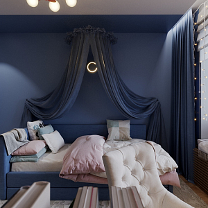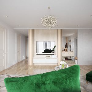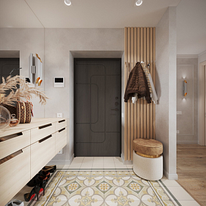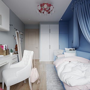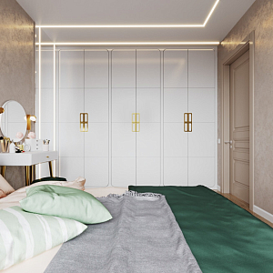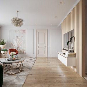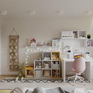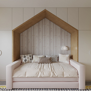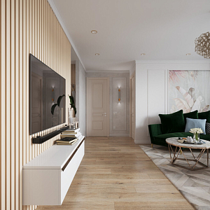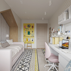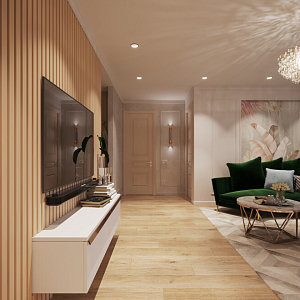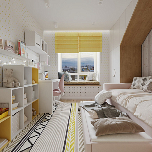 Интерьер с рейками с подсветкой, подсветкой настенной и подсветкой светодиодной в современном стиле, проект «Колоритная квартира для семьи с двумя детьми (девочками)» №13
