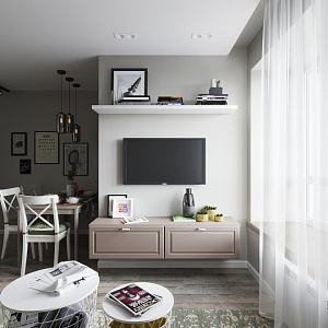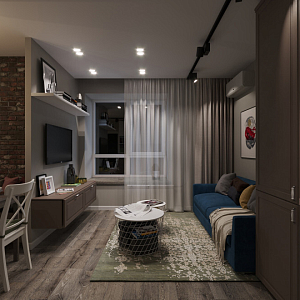 Интерьер гостиной с нишей с подсветкой, световыми линиями, рейками с подсветкой, подсветкой настенной, подсветкой светодиодной и с подсветкой в современном стиле, проект «Квартира с элементами лофт и скандинавского стиля» №3