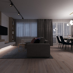 Интерьер столовой с подсветкой светодиодной в современном стиле, проект «Кухня-гостиная с акцентной фреской» №3