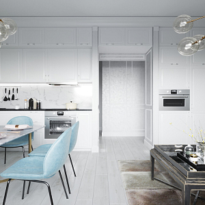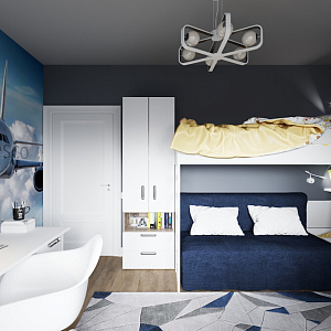 Интерьер детской cветовыми линиями, подсветкой светодиодной и светильниками над кроватью в неоклассике, проект «Квартира в ЖК "Две эпохи" в стиле современная классика» №10